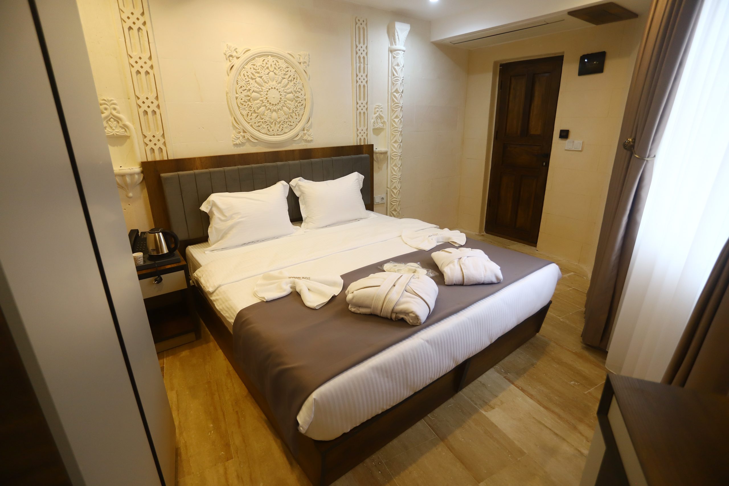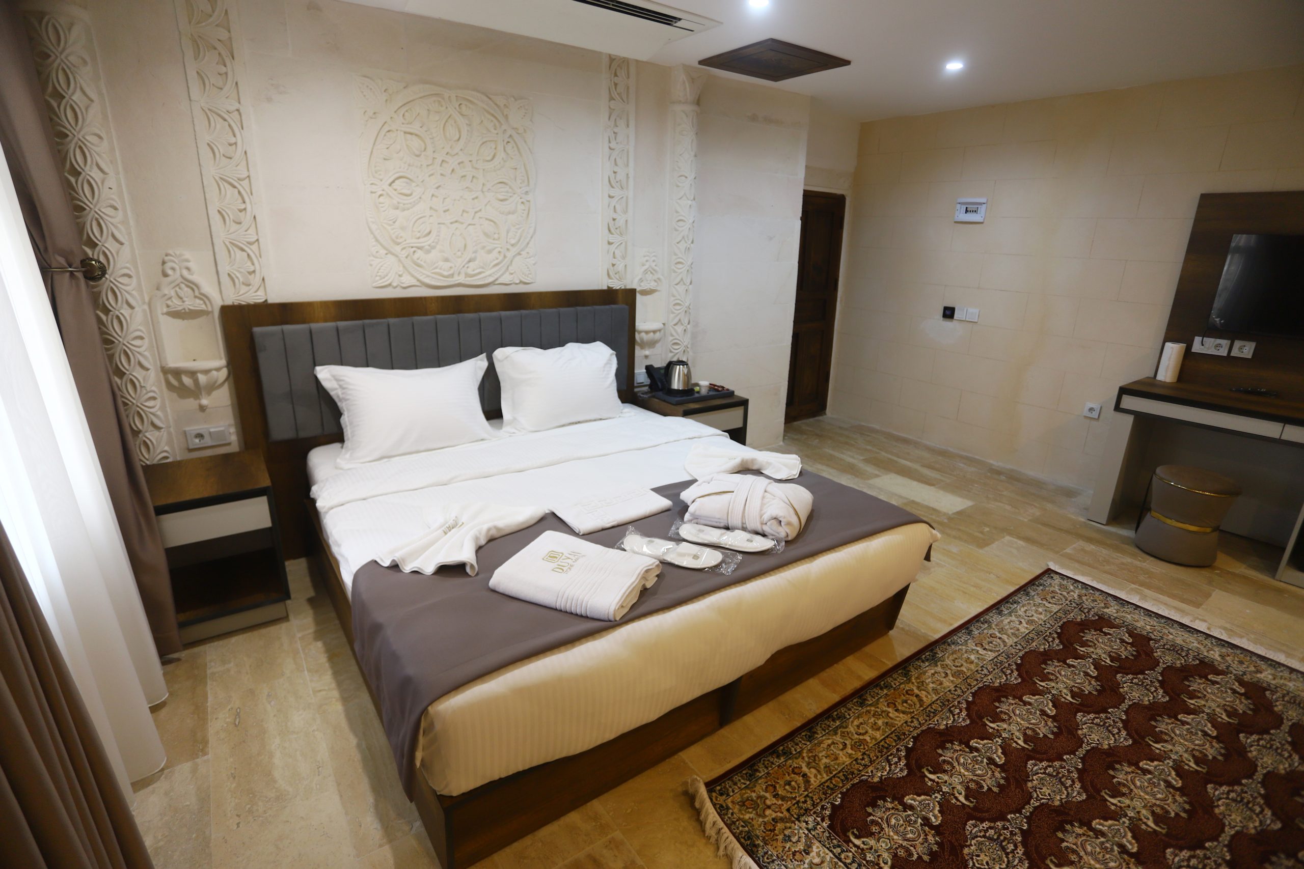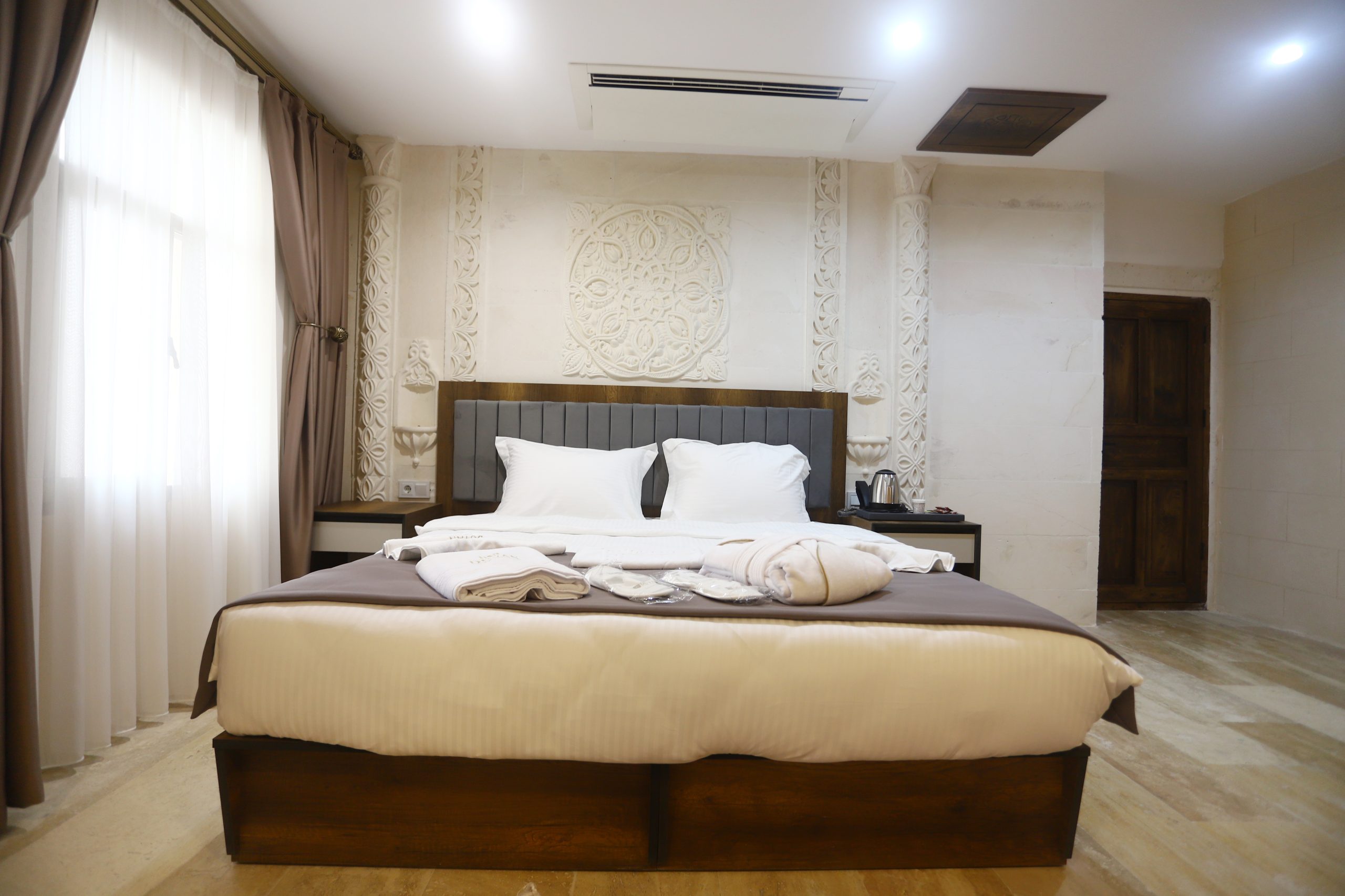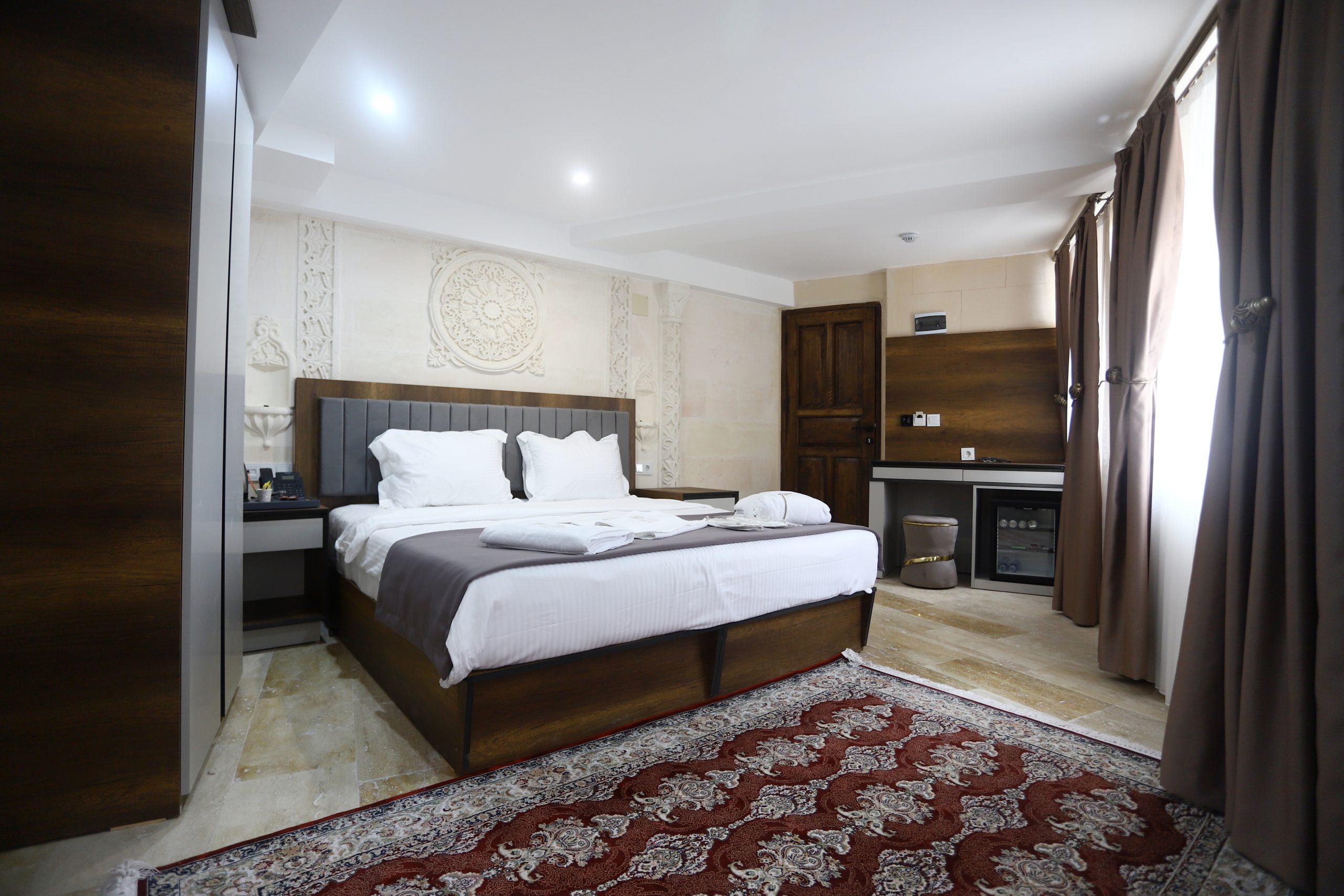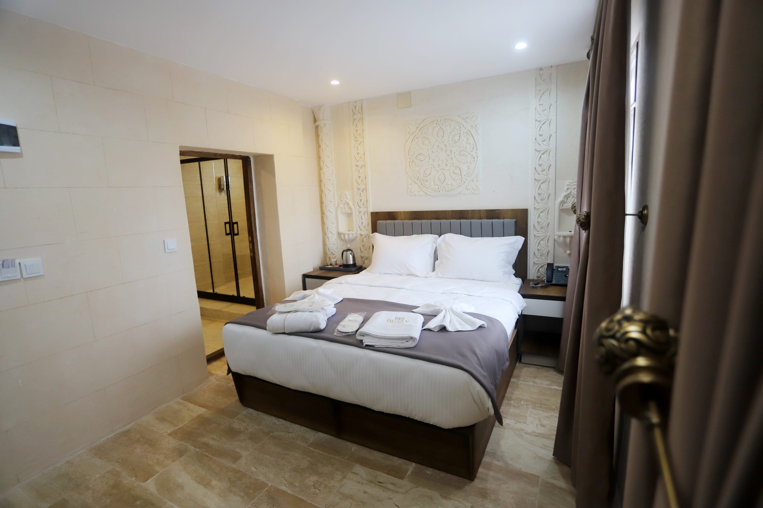 Tarihi doku ve lüksün birleştiği özel tasarım taş odalar.